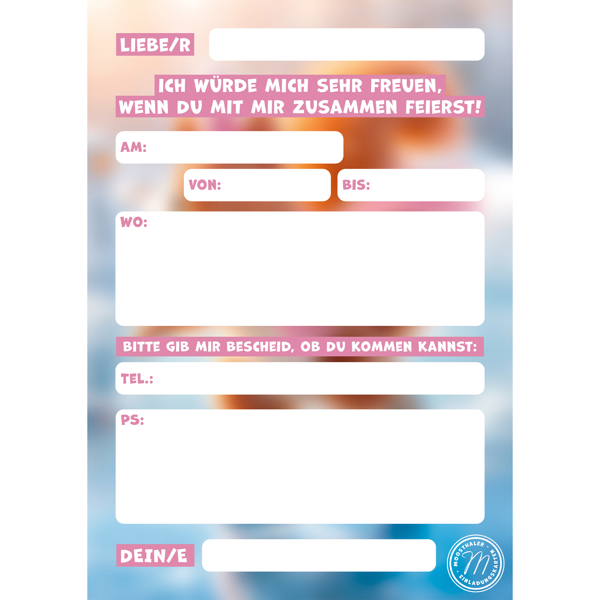 12 Einladungskarten im A6-Postkartenformat (10,5 x 14,8 cm) – Vorderseiten mit UV-Lack veredelt! So macht schon das Einladen Spaß!