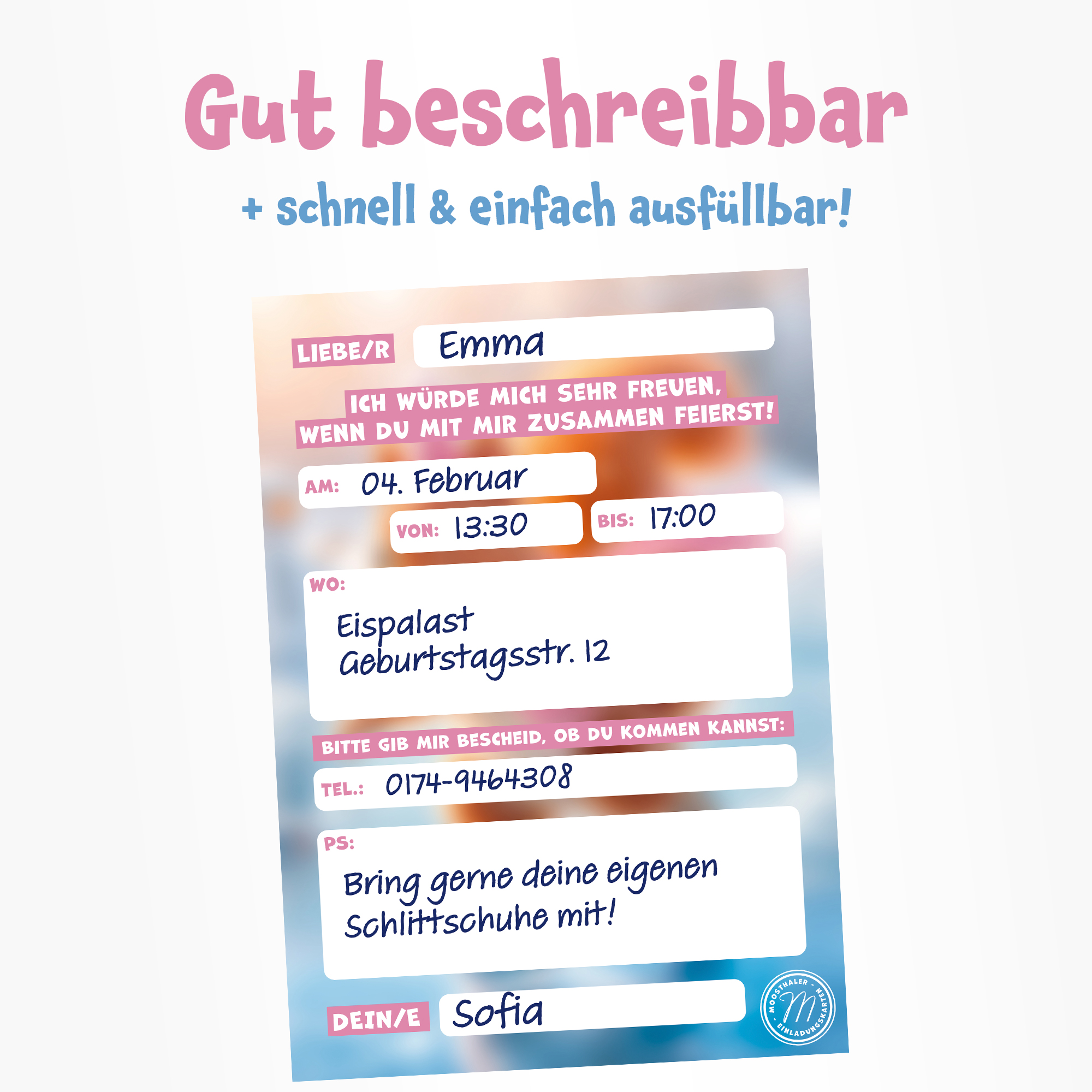 Rückseite mit vorgedruckten Feldern für alle wichtigen Infos – einfach und schnell ausgefüllt! Ideal für Kinder & Eltern!