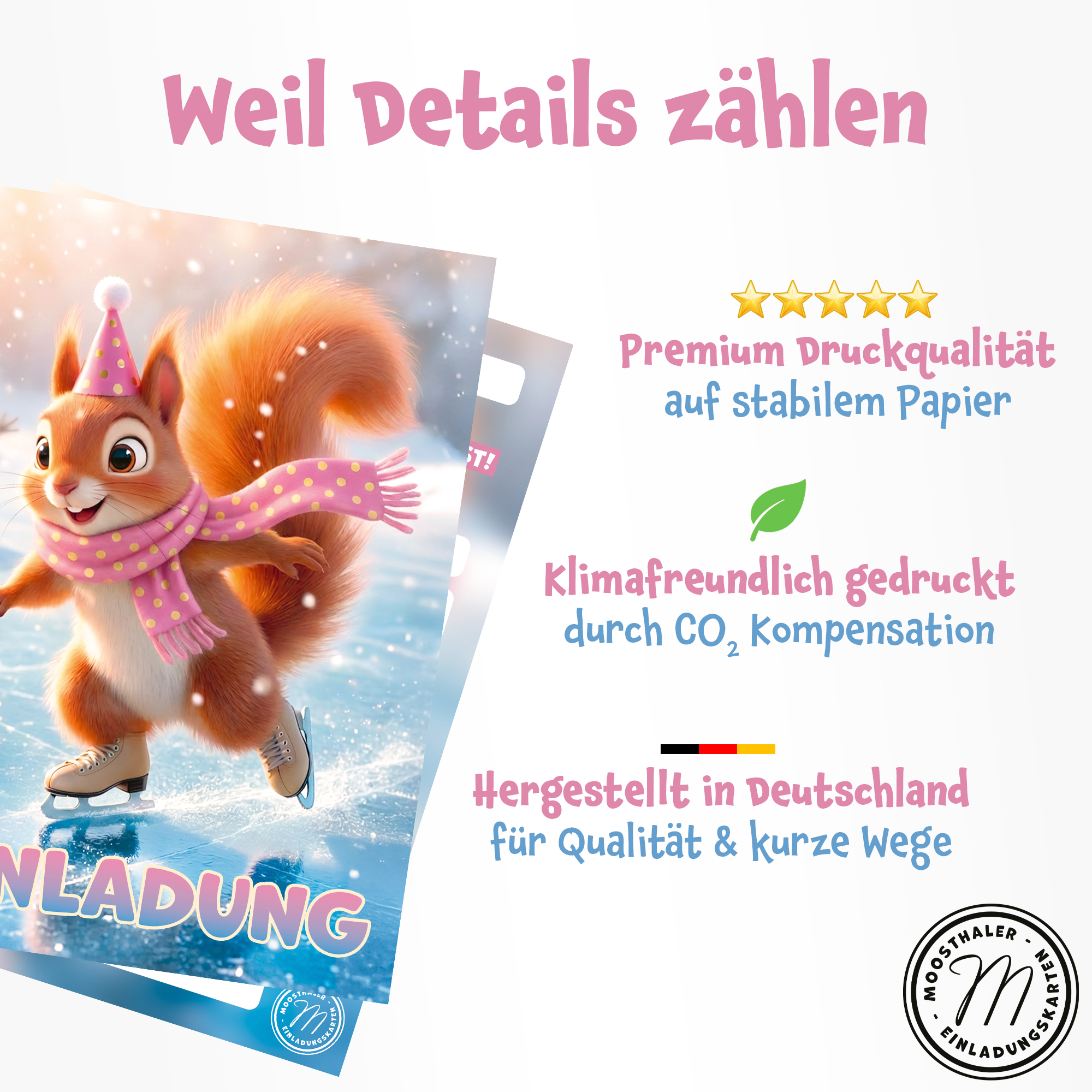 In Deutschland gestaltet und gedruckt – klimafreundlich durch CO₂-Ausgleich. Premium Druckqualität auf stabilem 350g/m² Papier!
