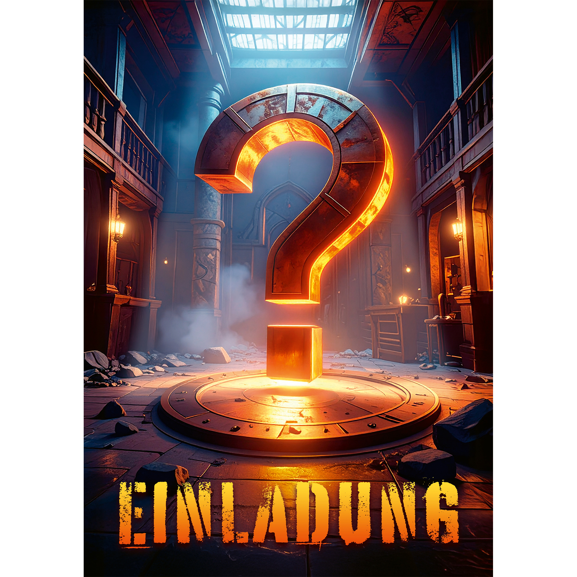Düstere Farben, geheimnisvolle Details und das markante Fragezeichen sorgen sofort für Spannung und Neugier. Diese Einladung macht klar: Hier wartet kein normaler Geburtstag, sondern ein echtes Rätsel-Abenteuer.