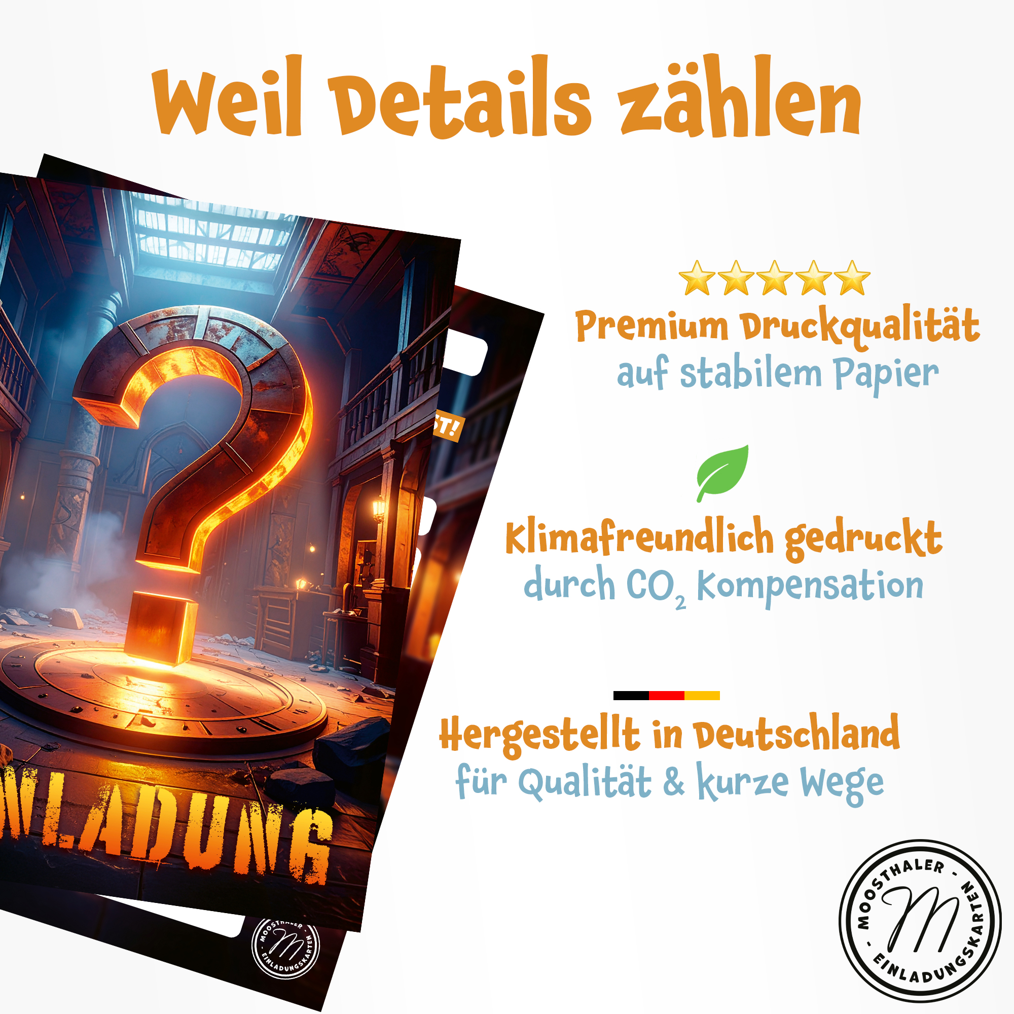 In Deutschland gestaltet und gedruckt – klimafreundlich durch CO₂-Ausgleich. Premium Druckqualität auf stabilem 350g/m² Papier!