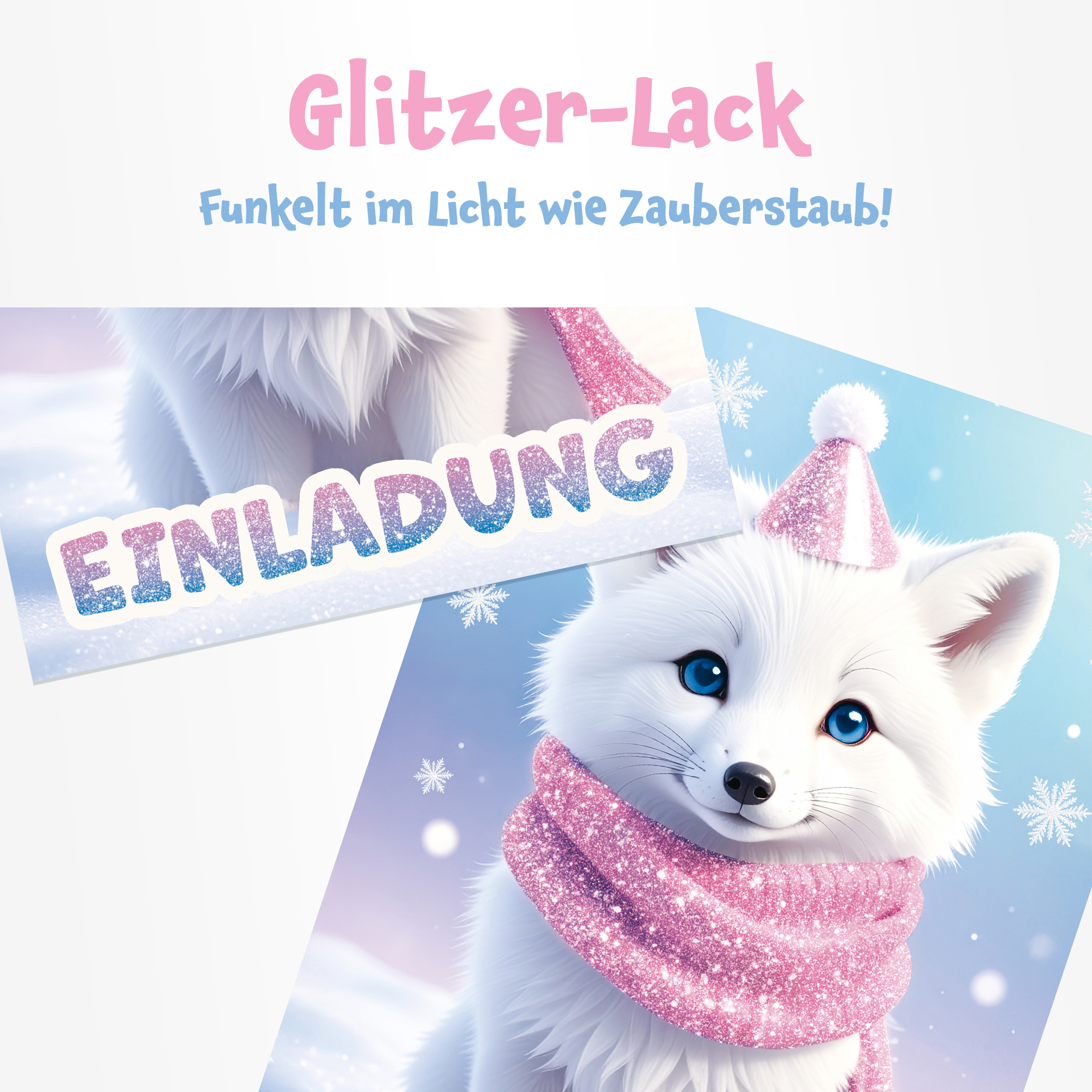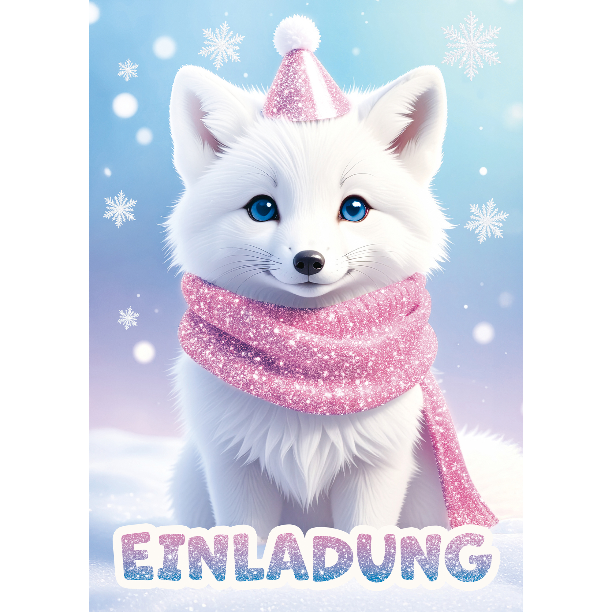Süßer Polarfuchs im Winterlook – Das liebevolle Design mit Glitzer, Schnee und einem fröhlichen Winterfuchs begeistert kleine Geburtstagsgäste sofort!