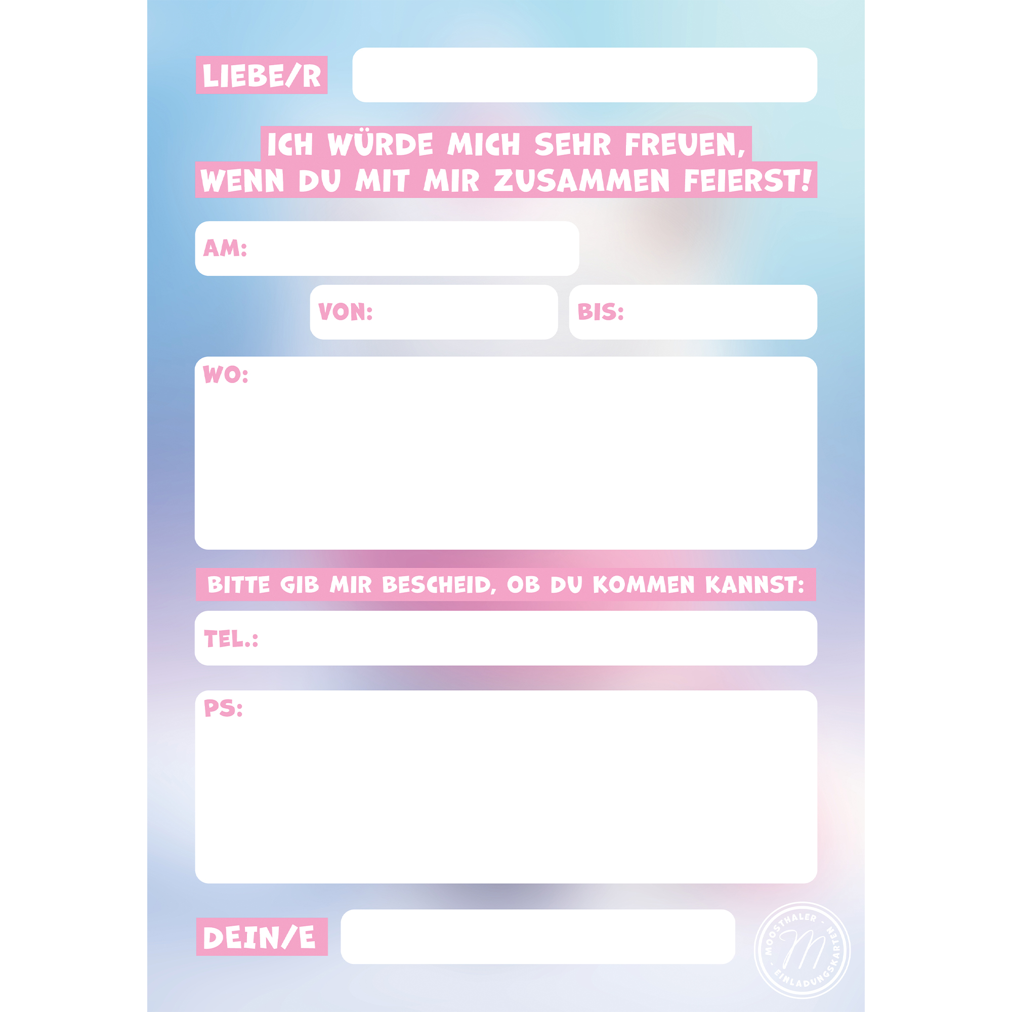 12 Einladungskarten im A6-Postkartenformat (10,5 x 14,8 cm) – Vorderseiten mit Glitzerlack veredelt! So macht schon das Einladen Spaß!
